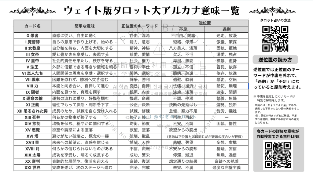 - タロット占いの意味一覧・占いのポイントが学べる冊子のダウンロード
