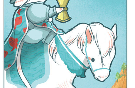 カップの9では裕福そうな商人が描かれています。家族が豊かに暮らすためには、まずは自分自身が豊かである必要があります。そのためこの男は、ワインの入った綺麗なカップをよく見える様に置いています。これは物質的にも精神的にも満たされている様子であるとともに、それをさらに分かち合う相手がいることで、10で描かれている奇跡の絆につなげられることもまた示唆されています。
